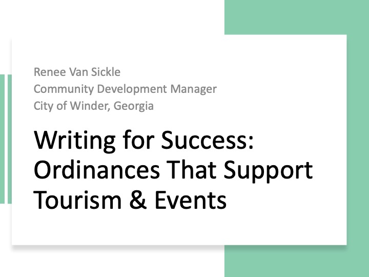 Writing for Success: Ordinances That Support Tourism & Events (needs audio)